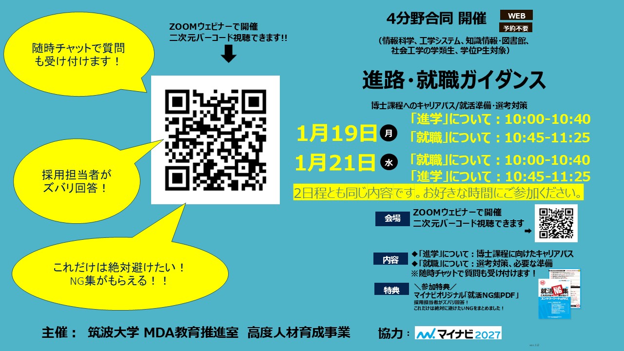 【開催案内】進路・就職ガイダンス(MDA教育推進室高度人材育成事業 主催)