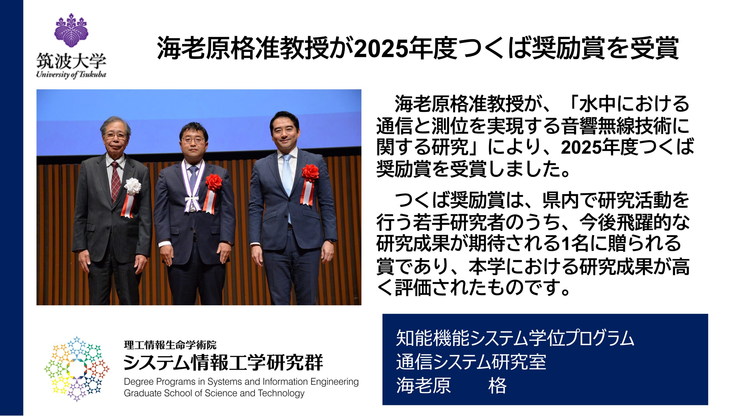 • 海老原格准教授が2025年度つくば奨励賞を受賞