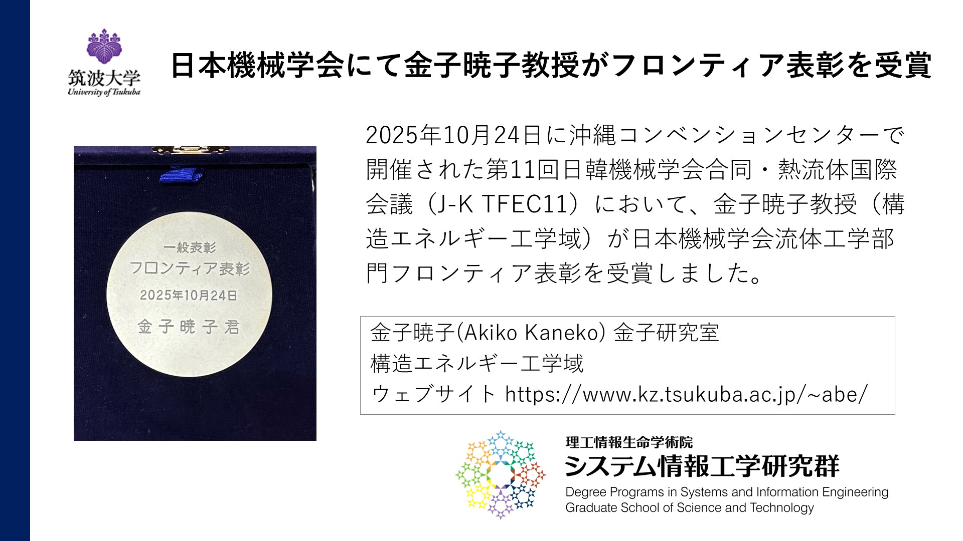 日本機械学会にて金子暁子教授がフロンティア表彰を受賞